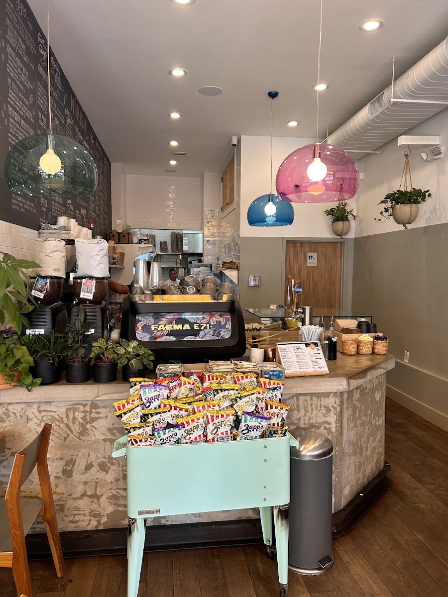 New fave cafe in the area! They make a fantastic and proper flat white. So many Americans butcher this! The breakfast burrito with chicken sausage was delicious. Partner had the salmon burger which he loved. Big fan, will be coming back soon.